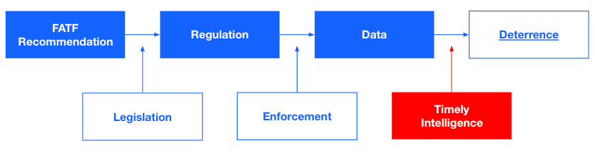 Starting with the FATF Recommendations, which is adopted in jurisdictions through regulations underpinned by legislation. These regulations will then need to be enforced effectively in order for objectives-based compliance that results in good-quality transactional data that will provide timely intelligence for the industry (both public and private) to jointly deter or recover assets illicit activity on the blockchain.